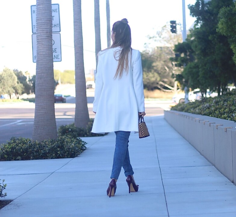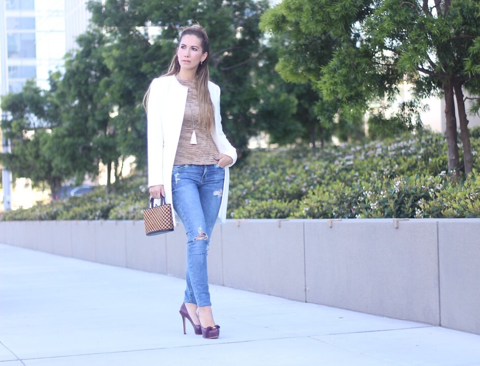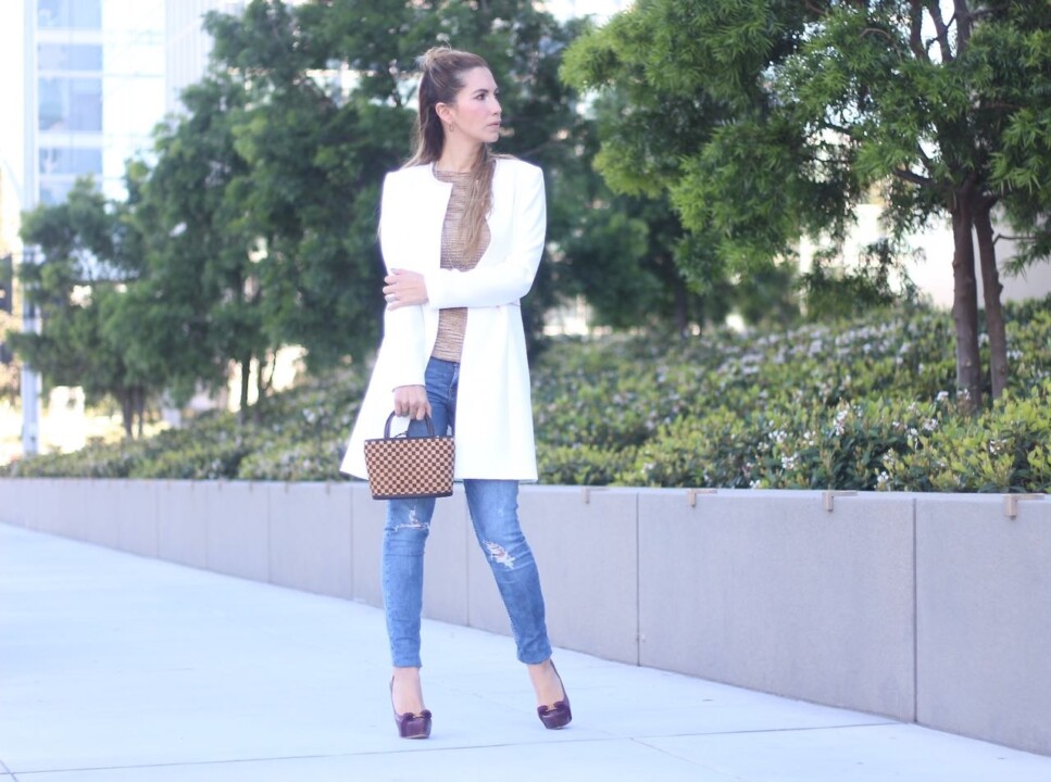 It’s incredible how time flies. Today’s look is about a statement piece, great to enhance your outfit, achieving a purely clean and fresh look. Yes, I’m talking about the basic white blazer or jacket, which is very easy to style and pair with almost every bottom. When I saw this one in the store it was love at first sight, it’s pearl embroidered chain detail immediately caught my attention. Let me tell you that since this piece hits below the hips it creates the optical illusion of a liner and taller silhouette elongating your torso. A totally classic piece with a twist!