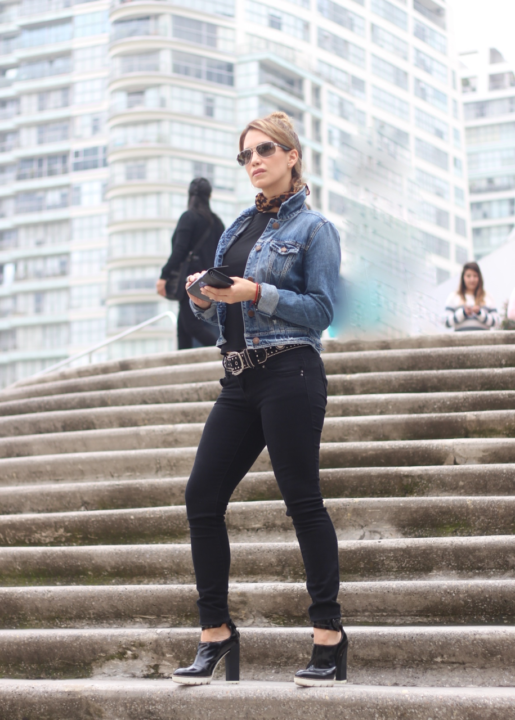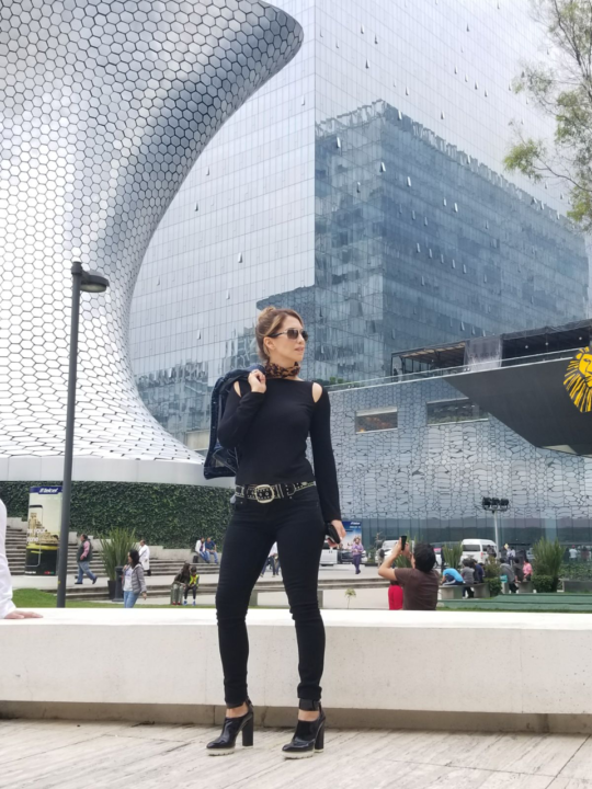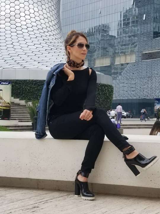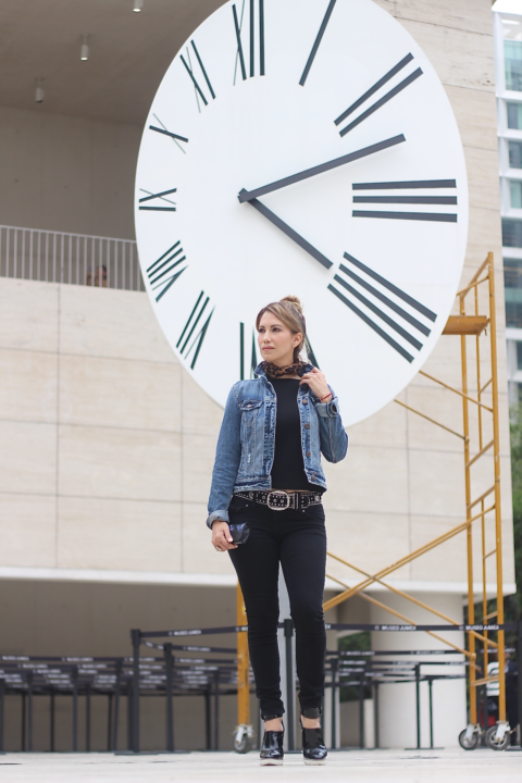 The day was kind of chilly even though Mexico city has an incredible weather, however, you always need to bring a jacket and be prepared to bundle up when the temperatures start to drop, especially in the evening. During the past couple of weeks it has been rainning a lot. After my shoot, I had lunch with friends and family, so my purpose when choosing my outfit for that day was to have casual wear that feels like it’s more sophisticated. So, I chose a monochromatic look based on black jeans and a cute cut-out shoulder top. To spice up the entire look I added a statement belt, a trendy accessory that enhances any look. Also, a scarf tied around my neck, as a chic touch, and a denim jacket as a completor piece. A denim jacket is one of the most versatile pieces, very easy to style, so make sure to incorporate this garment into your wardrobe. See how easy it is to make a casual look more stylish and chic by just adding great accessories.
