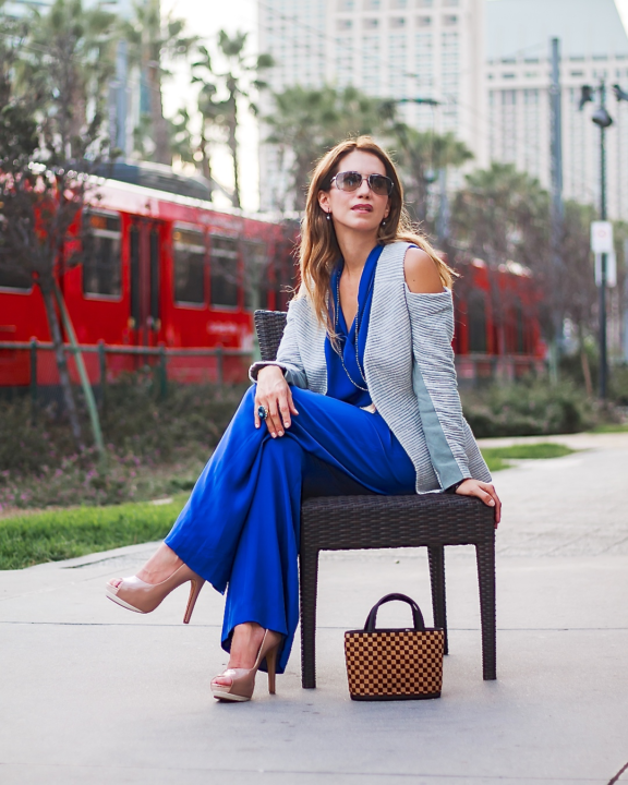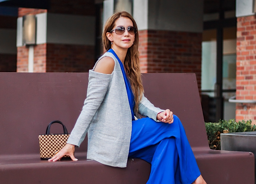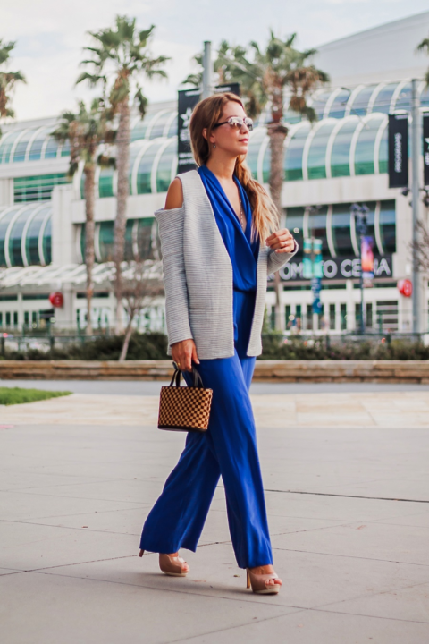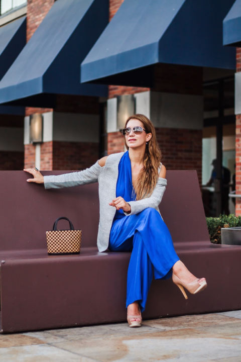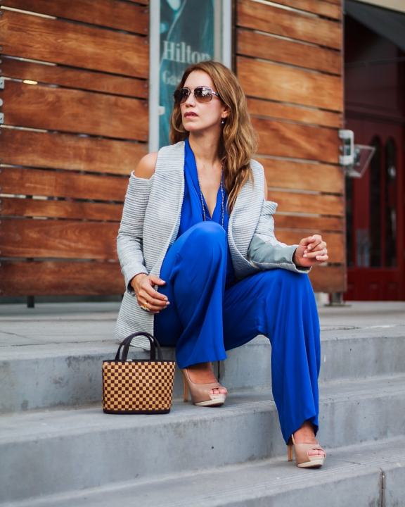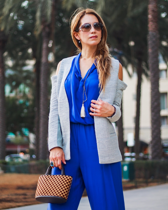 The shooting day was a pretty busy one for me, so I decided to wear this outfit to look polished and chic at the same time. I layered my blazer under a vibrant blue jumpsuit. This is an old piece from my closet, but still one of my favorites. And I wasn’t wrong because, I really love how these pieces look together and the day I wore them, I received so many compliments!