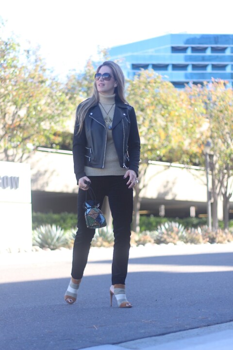 El día de hoy estoy compartiendo el look que lleve el día de ayer para una comida con un grupo de amigas en la cual disfrutamos un momento muy agradable platicando sobre nuestras metas futuras y propósitos para este año nuevo. Mi elección fue cómoda y muy chic a la vez. Un look conformado por piezas básicas y versátiles que puedes llevar y reusar a lo largo del año. Tal como estos pantalones de terciopelo que lleve en la noche de año nuevo. Al ser super fáciles de combinar lucen bien con todo. Incorpore un suéter de cuello de tortuga que tiene el suficiente brillo para llevar durante la noche y perfceto tambien para el día. Este añade un bonito toque a un conjunto en negro. Checa como con la chamarra se agrega un toque edgy al conjunto entero. Esta moto jacket es un básico que te aseguro se convertirá en uno de tus favoritos porque luce bien sobre cualquier prenda y déjame decirte que está en descuento a muy buen precio. Así, que no olvides checar este buena oportunidad.