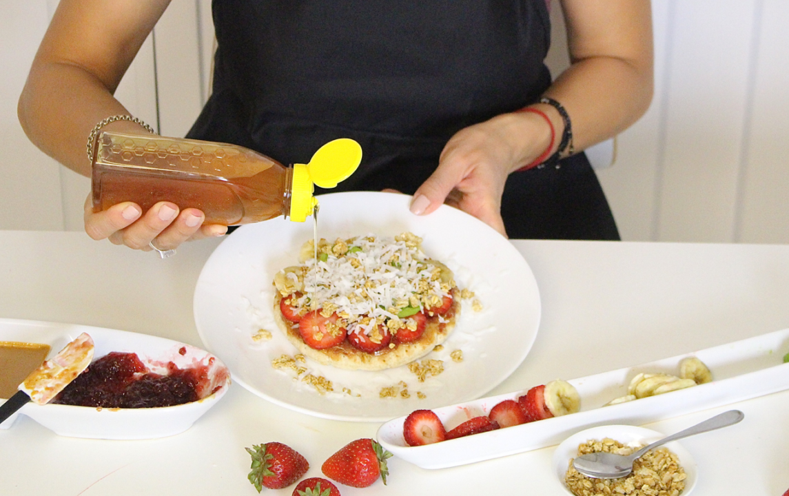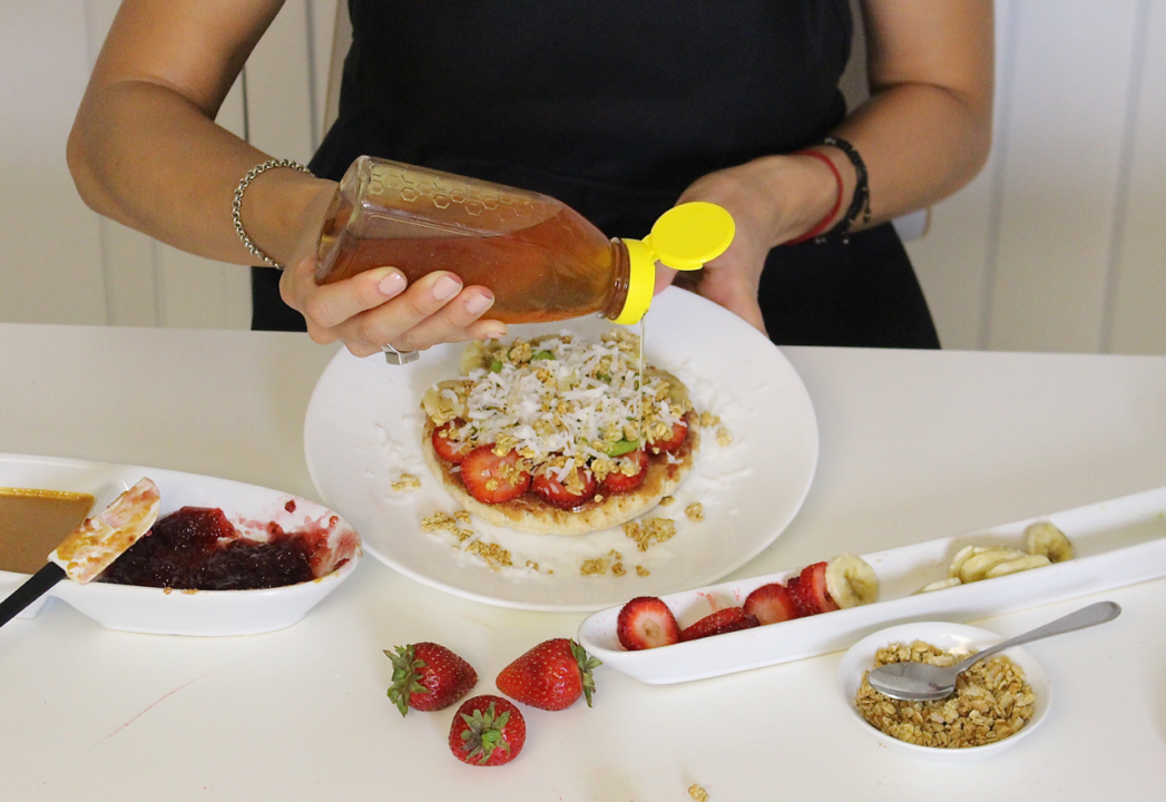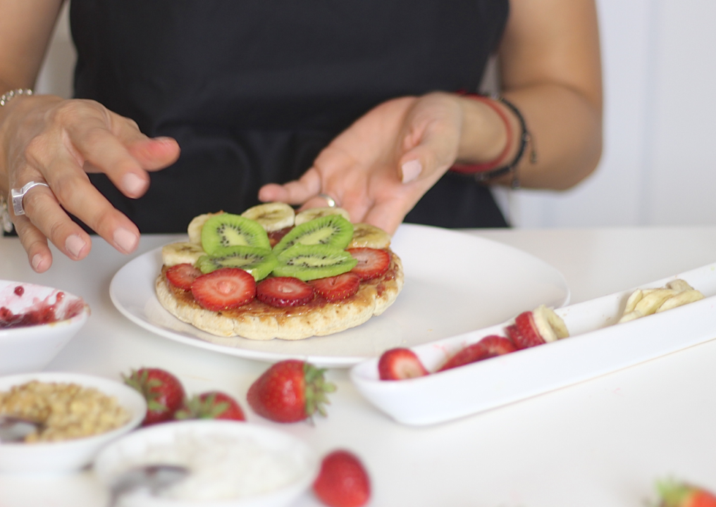 Aqui les comparto una especie de pizza de frutas que no requiere horneado y que es perfecta a cualquier hora del día, gracias a sus proteinas y vitaminas. Un muy buen snack que se puede preparar junto con los mas pequeños porque el proceso es muy sencillo.