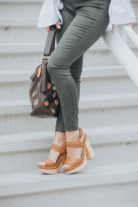 Once I tried it on, I realized that it looks even better than when it was hung on the rack. This beautiful garment, with a very flattering cut and style, is easy to style with different bottoms. I love it because it’s a functional trendy piece that works great to add personality to any look. I paired it with skinny military or olive colored pants, they are also a great piece for work, weekends, and everything in between.