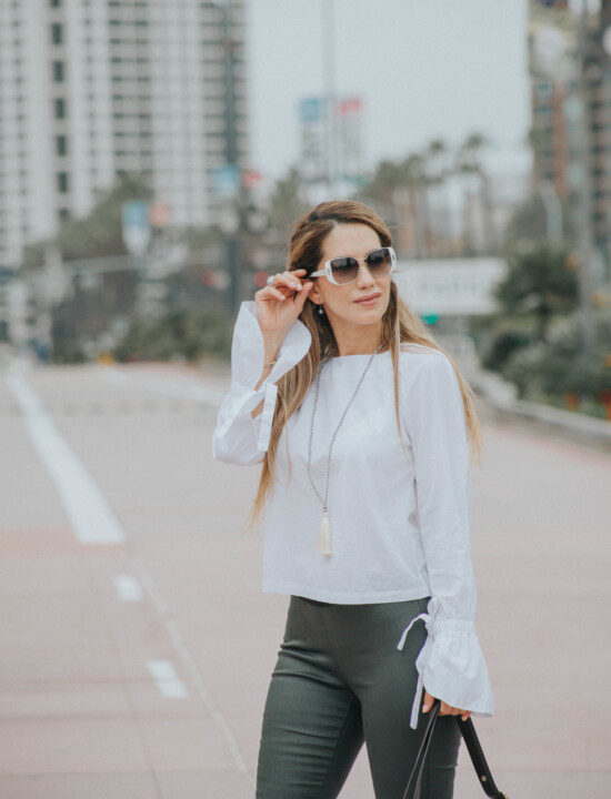 For today I chose a basic white blouse with a major upgrade: the sleeves! Look how pretty and sleek they are. It seems like the statement that stands out this season is, the bigger the sleeves the better. And I totally love the bell sleeves trend that stays strong and adds femininity and drama to your look. I decided to refresh my wardrobe with some spring-summer pieces and when I saw this blouse at the store, I immediately knew that I wanted it. You know how love at first sight works, hahaha.