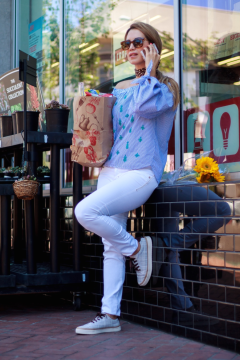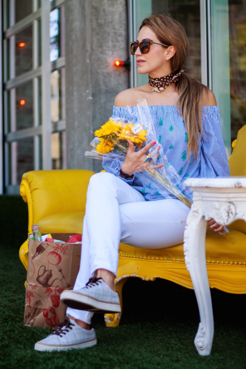 Quiero compartir este look que llevé hace un par de dias, en uno de mis típicos días de la semana, en que tuve un día muy ocupado y con mucha actividad. Decidí llevar un par de jeans blancos con una linda camisa con hombros al descubierto, me encanta esta prenda, porque hoy en día, enseñar los hombro se ha convertido en algo súper sexy y muy chic. Sin duda es una tendencia que está por todos lados. Me encanta estar casual cuando el día y mis actividades me lo permiten, eso si, siempre disfruto añadiendo un toque chic y divertido a todos mis looks. Es por ello que elegí el calzado perfecto para complementar este look. Mis Koola Tana sneakers son una buena opción para disfrutar con estilo estos días de verano. Me permiten lucir casual pero muy chic a la vez y lo mejor de todo, es que están muy cómodos gracias a que son muy ligeros.