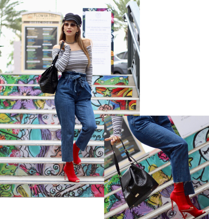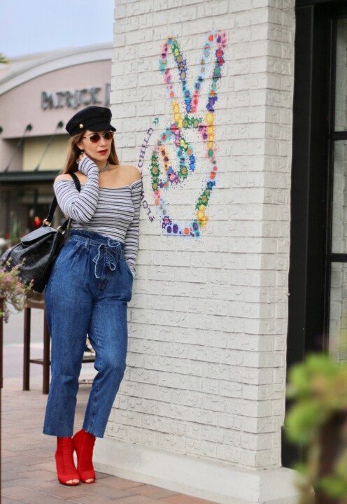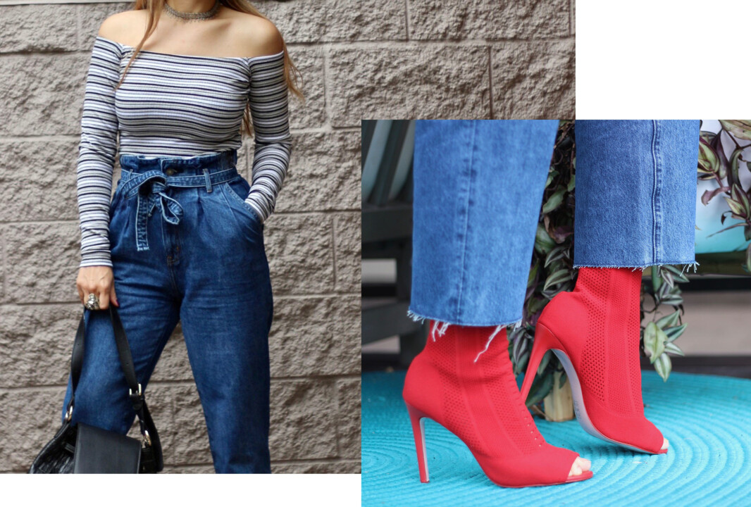 I love all styles of jeans because they are like my second skin. They are always extremely versatile and you can wear them in a casual or sophisticated way, according to the occasion. I have multiple pairs and I love my skinnies but I wanted to expand my denim collection and try the mom jeans. I’m a mother so this throwback style is shouting my name! I found this paperbag waist pair, and I love the fact that they are kind of oversized, but if you want to accentuate your waistline, this is the cut to go. I love this pair because it’s flattering and relaxing at the same time. The effect that the pleating brings elongates the legs, so now I know why this vintage style is causing a major impact and becoming super popular. Try the paperbag jeans trend for yourself. Wear them with either something cropped or something fitted on top, like a bodysuit or a slim-fitting blouse. This cut tends to be baggier so you don’t want to add volume to your silhouette because it will look unflattering due to the extra fabric.