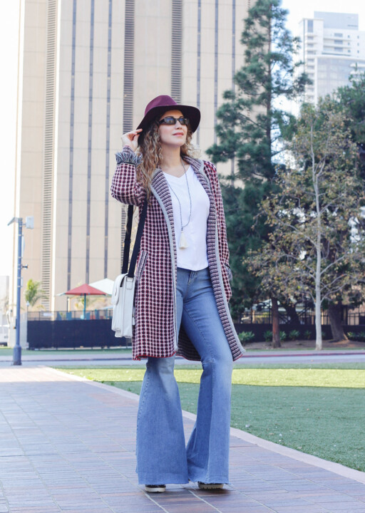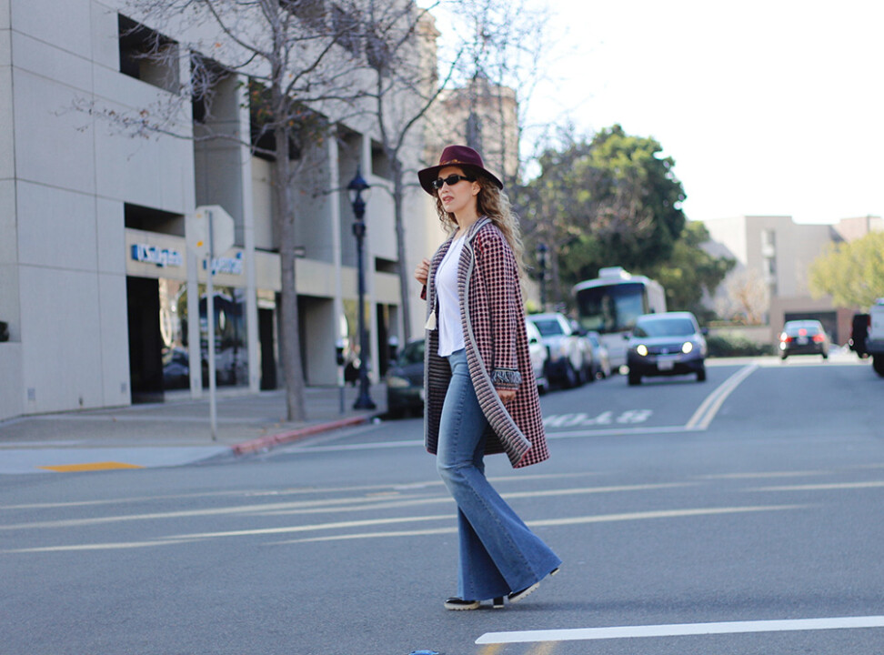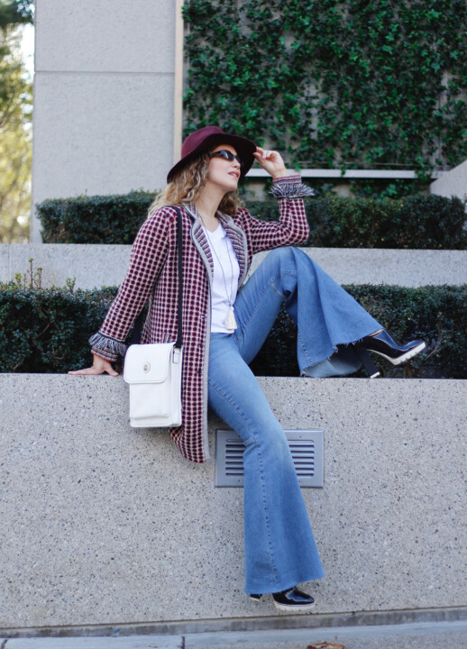 To give retro and 70’s vibes to my look, I played with volume and lengths by adding a long fringe cardigan. This is a good way to show movement and fluidity when wearing any kind of flared trousers, jeans… But keep in mind that if the style you’re wearing is kind of bulky is better to avoid adding extra volume with a wide or oversized top, that way you will in maintain the right balance.