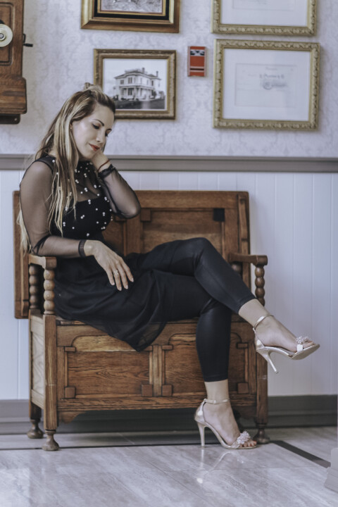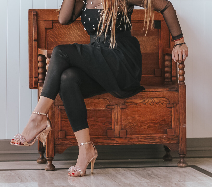 The first pair I fell in love with is the Lux Rose Gold. Since spring has sprung, it’s the time of the year to wear this style of shoes. Not only are they sophisticated and great to enhance your entire look, but they are also on trend. This shoe is definitely a statement and a great addition to my spring shoes. I have always mentioned that I love metallics because, for me, they work like neutrals and go with everything. Their beating detail is amazing, making this pair even more stylish. They are super versatile, great to turn any casual-chic attire to the next level, or amazingly beautiful to wear with a gown at night. I always love to add that chic and luxurious touch to my looks and this pair did the job perfectly. I decided to wear it with black for contrast.