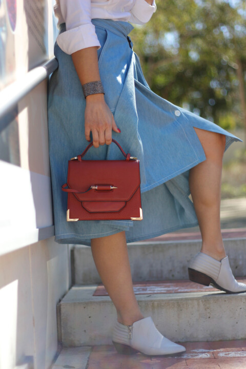 White shirt: H&M (old) similar here, here | asymmetrical skirt: Colovos | bag: Mackage | nail polish: Sally Hansen (Slay all day)