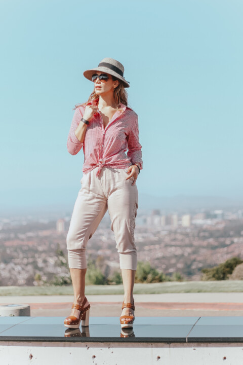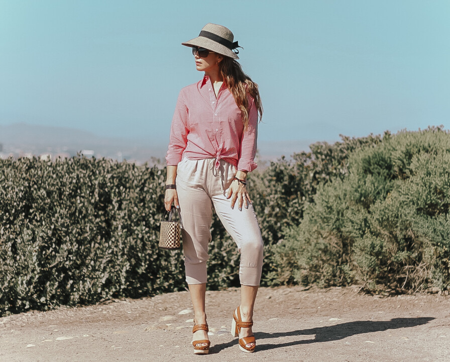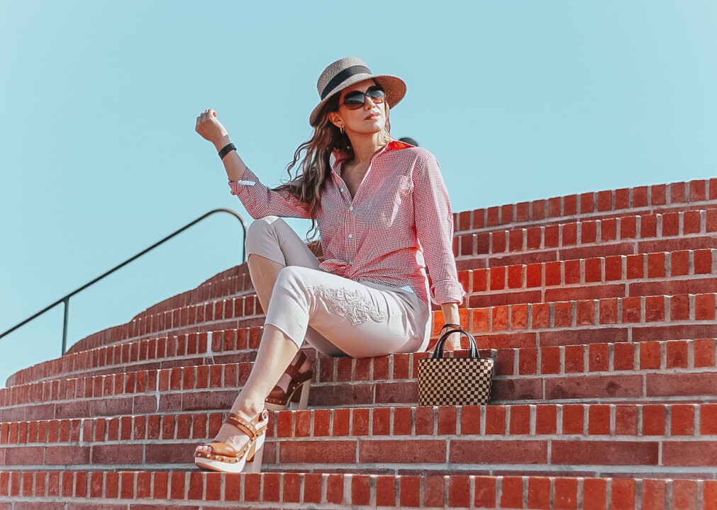 I am sharing a look that I wore a couple of days ago, showing how easy it is to take advantage of a gingham button down shirt, I styled it summer appropriate, but a garment like this is very easy to style during any season. From spring to summer, incorporating light hues and light pieces just like I did with my capri pants. Even fall to winter by just adding layers and any kind of bottoms and your gingham garment will be your focal and star ingredient to spice up your look. Once you have these printed pieces in your hands you will realize how good they look when pairing gingham style with the rest of your wardrobe.