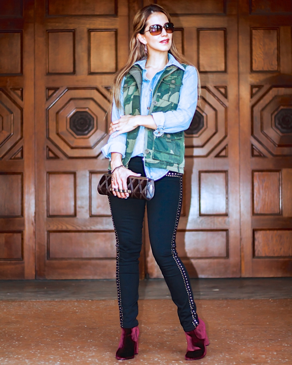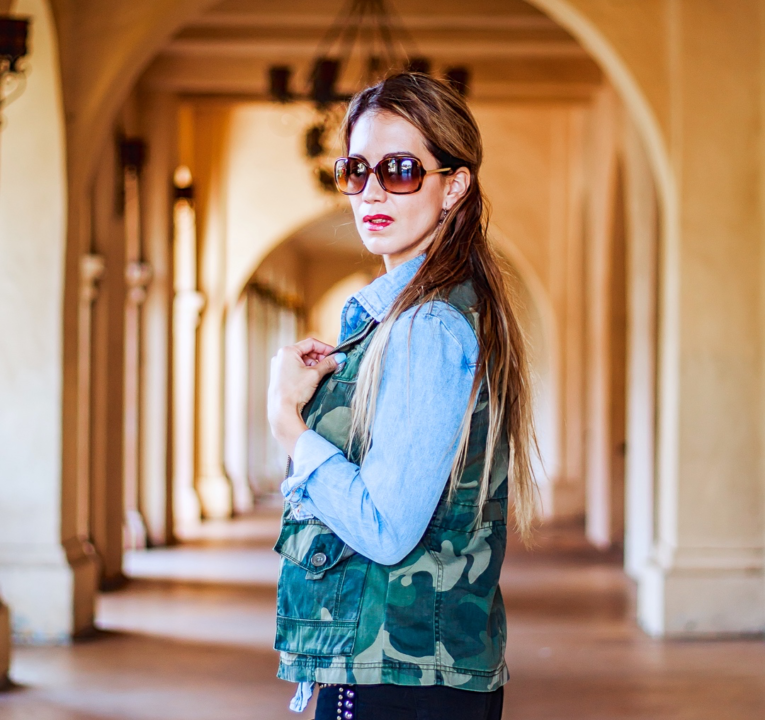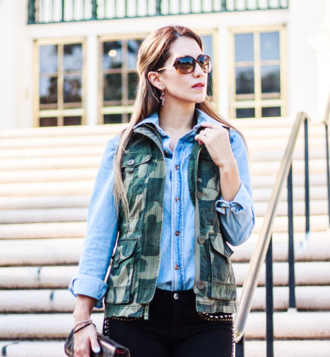 I just bought this camouflage print vest, a cool and versatile garment that works as a staple enhancing and adding a fun touch to any outfit. And important: you can wear camo print all year long, because this print never goes out of style. For me, it’s like a neutral, and without a doubt, the army pattern continues strong this season. My recommendation is to pick one piece, and style your look around it: could be a jacket, vest, pants, bag, shoes, etcetera. You can see this gorgeous style in so many different ways. Maintain the rest of your outfit kind of simple to avoid looking like a Christmas tree. It’s all about your personality, but in my opinion, when wearing a statement or busy print, keeping balance is the key to not look like a mess.