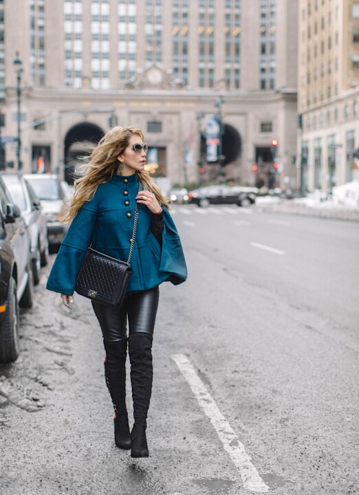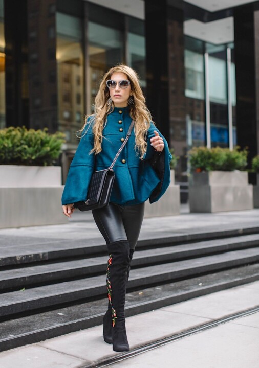 Para completar mi look incorporĂ© esta elegante y linda capa que comprĂ© el año pasado y que continĂşa siendo una de mis piezas favoritas,  sin duda es una prenda que añade un toque sofisticado a cualquier conjunto. Llevo unas lindas botas, que crĂ©eme que desde el momento en que las vi, sentĂ que debĂa tenerlas. Su inigualable y unico detalle de bordado floral le da un toque muy femenino con una ligera vibra edgy. Opte por pantalones de piel en negro, para hacer que las botas fueran la pieza central o punto focal. RecibĂ cientos de cumplidos llevando estas botas.