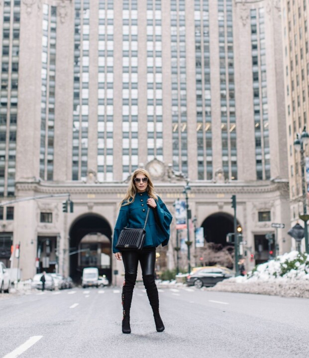 I completed my look with this fancy cape, that I bought last year, but it’s still one of my favorite pieces to add an elegant and sophisticated touch to any look. I incorporated a beautiful pair of statement boots, the minute I saw them I knew I had to get them. Their floral embroidery detail gets a dark and feminine vibe to them. I wore leather black pants in order to keep the boots as a central piece or focal point. I got tons of compliments wearing them! I wore this look to attend a brunch with wonderful bloggers and after spending an amazing time exchanging tips and experiences with them I enjoyed VERDAD runway at Pier 59 Studios and then spent my evening at the Skylight Clarkson Square building attending Vivienne Hu Fall/ Winter collection and  Leanne Marshall. Both were absolutely amazing.