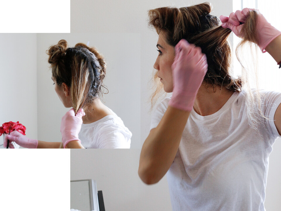 After the mix is ready, I put on my gloves and I’m ready to let the magic begin. With my hair dry and perfectly detangled, I divided it into 4 sections, then I covered the roots with the product, going section by section until I was sure all areas were saturated.