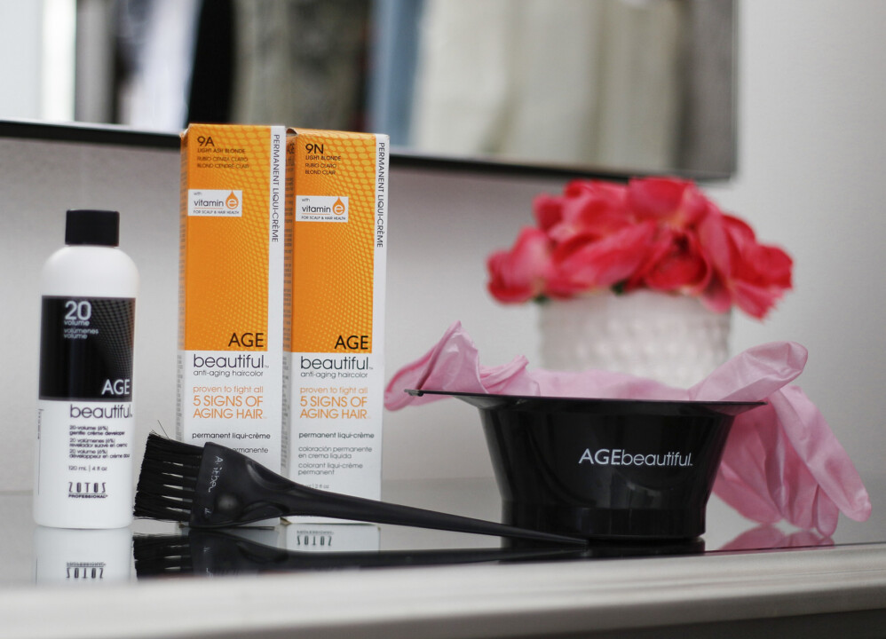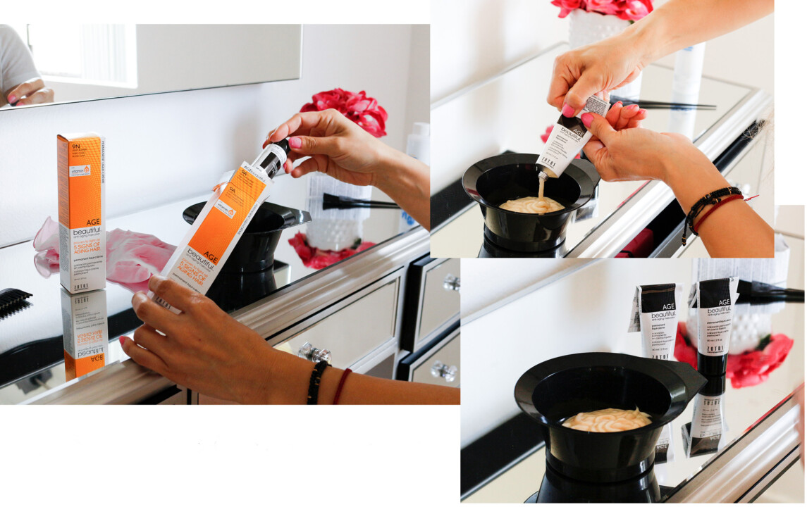 I want to show you the step by step process on how to do your root retouch with AGEbeautiful Liqui-Crème. Ready, here I go: